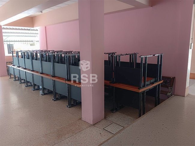 ลูกค้าต้องการโต๊ะคอมพิวเตอร์จำนวนหลายตัวไปให้ทางโรงเรียนแห่งหนึ่ง ที่ราคาไม่เกินงบประมาณที่ได้ตั้งไว้ ทางเซลส์ RSB จึงแนะนำเป็นโต๊ะคอมพิวเตอร์ ขาเหล็กกลม รหัส 821 เป็นรุ่นขายดี ยอดนิยมเลยค่ะ รุ่นนี้ดีไซน์เป็นขาเหล็กทรงกลมหนาพ่นสีดำ ส่วนท๊อปโต๊ะ บังหน้าและรางคีย์บอร์ดปิดผิวเมลามีนทั้งตัวค่ะ ลูกค้าได้เลือกเฉพาะท๊อปเป็นสีเมลามีนเชอรี่ ส่วนที่เหลือสีดำค่ะ สีเชอรี่ตัดกับสีดำเป็นสีที่คลาสิคเหมาะกับสถานที่การศึกษามากค่ะ