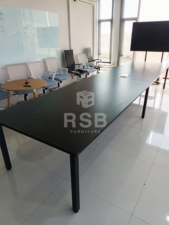 จัดส่งและประกอบติดตั้งเรียบร้อยค่ะ ในภาพเป็นห้องประชุมภายในออฟฟิศลูกค้า ได้เลือกใช้โต๊ะประชุมตัวต่อ ขาเหล็กตรง รหัสสินค้า 3529 และสั่งเจาะรูใส่กล่องปลั๊กไฟตรงกลางด้วย เลือกท๊อปโตีะปละขาโตีะเป็นสีดำค่ะ