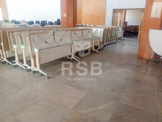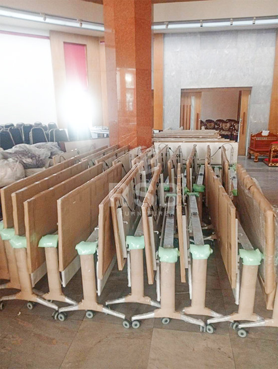 ในภาพจัดส่งเรียบร้อยโต๊ะพับล้อเลื่อน รุ่นแผ่นบังตาวัสดุไม้ ล้อเลื่อนสามารถล็อคได้ รหัสสินค้า 2859 รุ่นนี้ยังสามารถเลือกสีท๊อปได้ ท๊อปปิดผิวด้วยเมลามีน กันความชื้น ความร้อนได้ดีในระดับนึงเลยค่ะ และโครงขาทำจากวัสดุเหล็กแผ่นปั๊มขึ้นรูป ชุบโครเมียมเพื่อความเงางาม