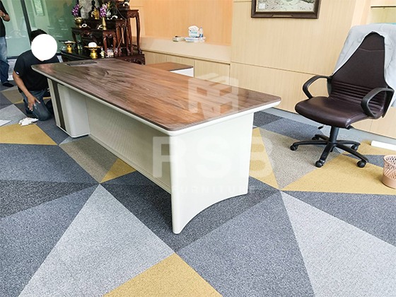 จัดส่งและประกอบติดตั้งเรียบร้อยโต๊ะทำงานผู้บริหาร ตัวแอล ขาโต๊ะวัสดุเหล็กดีไซน์สีครีม รหัสสินค้า 4804 รุ่นนี้ขนาด กว้าง 260 ยาว 170 สูง 75 cm ขนาดใหญ่นั่งทำงานแบบวางโน๊ตบุคได้สบาย พื้นที่เยอะ และสะดวกมีปลั๊กไฟบนท๊อปให้