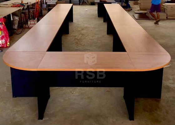 ผลงานติดตั้งโต๊ะประชุม ตัวต่อ ขาไม้ ตัว U รหัส 3559