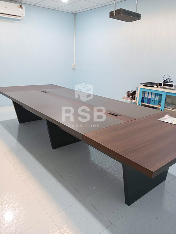 หน้างานในภาพ จัดส่งโต๊ะประชุม 3 ขา แบบหนา ดีไซน์ขาทรง คางหมู รหัสสินค้า 5076 โต๊ะมีขนาดกว้าง 380 ลึก 140 และสูง 75 cm ดีไซน์สีโต๊ะสีเมลามีนพิเศษให้ความรู้สึกเหมือน สัมผัสไม้จริงเลยค่ะ และบนท๊อปมีกล่องรอดสายไฟให้อีก 2 จุดด้วยค่ะ