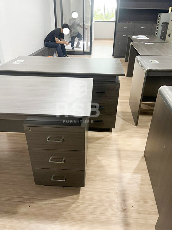 สำหรับภาพถ่ายจากหน้างานนี้ จัดส่งโต๊ะทำงาน รุ่นขายดี ภายในออฟฟิศที่กำลังจะเปิดใหม่ค่ะ รุ่นนี้อยากแนะนำเลยค่ะ ลิ้นชักแผ่นไม้ด้านในหนา และรางลิ้นชักดึงแรงๆไม่หลุดออกจากร่าง แข็งแรงมากค่ะ และขอบโต๊ะด้านข้างวัสดุอลูมิเนียม ดีไซน์สวยมาก บนท๊อปยังมีรูรอดสายไฟ ทรงเหลี่ยมพร้อมฝาครอบให้ ครบจบในรุ่นเดียวเลยค่ะ รหัสสินค้า 5286
