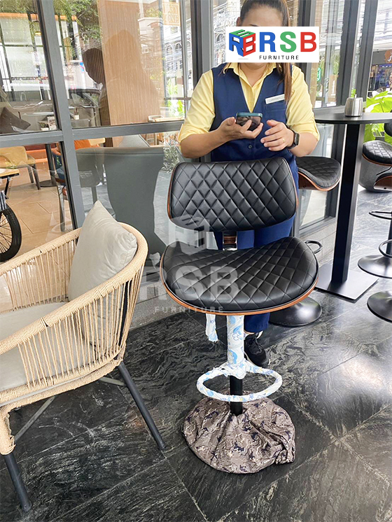 รีวิวภาพถ่ายจากหน้างานค่ะ จัดส่งเก้าอี้บาร์ ลูกค้าหน้างานนี้ได้กลับมาสั่งซื้อเก้าอี้บาร์ Retro designไม้วีเนียร์ ดัดขึ้นรูป หุ้มเบาะอีกชั้น รหัสสินค้า 4732 ไปใช้งานเพิ่ม ในอีกหนึ่งสาขาของลูกค้าค่ะ รุ่นนี้โครงเหล็กหนาพิเศษ น้ำหนักเก้าอี้จะหนัก หนากว่ารุ่นอื่น ขาเหล็กพ่นสีดำด้าน สวยมากๆค่ะ