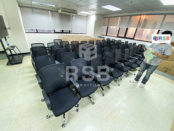 หน้างานนี้จัดส่งเก้าอี้ทำงาน รุ่นพนักพิงหลังใหญ่ และโต๊ะพับล้อเลื่อนขนาดกว้าง 80 cm จำนวนหลายตัวเลยค่ะ เก้าอี้ทำงานใช้เป็นเก้าอี้ทำงาน รหัสสินค้า 4455 พนักพิงใหญ่หุ้มด้วยผ้าตาข่าย เป็นรุ่นขายดี และนั่งสบาย ส่วนโต๊ะพับล้อเลื่อนใช้เป็นโต๊ะพับล้อลเื่อน รหัสสินค้า 719
