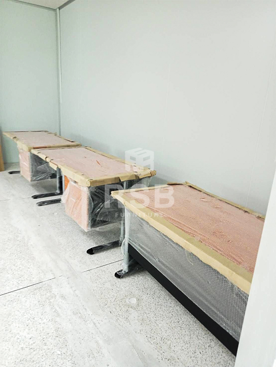 ภาพบรรยากาศจากหน้างานจัดส่งโต๊ะทำงานขาไม้ 2 ลิ้นชัก หน้างานนี้ลูกค้าได้สั่งติดตั้งมินิสกรีนเพิ่ม