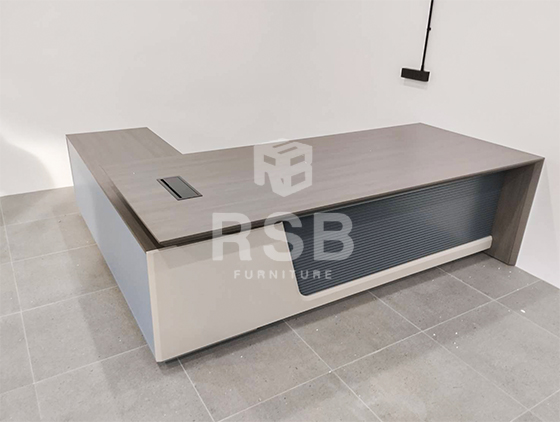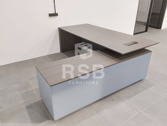 หน้างานนี้เป็นออฟฟิศเปิดใหม่ได้เลือกซื้อโต๊ะทำงานตัวแอลสำหรับห้องทำงานผู้บริหารค่ะ ได้เลือกใช้เป็นโต๊ะทำงานผู้บริหารตัวแอล ขนาด 240 x 220 cm รหัสสินค้า 4630 รุ่นนี้ดีไซน์แผ่นบังขาด้านหน้า ทำเป็น 2 ชั้น ทั้งแบบเรียบ และแบบที่เป็นลายเส้น สวยหรูลงตัว ส่วนท๊อปปิดผิวเมลามีนเหมือนไม้ธรรมชาติจริง สีจริงสวยหรูมากๆค่ะ