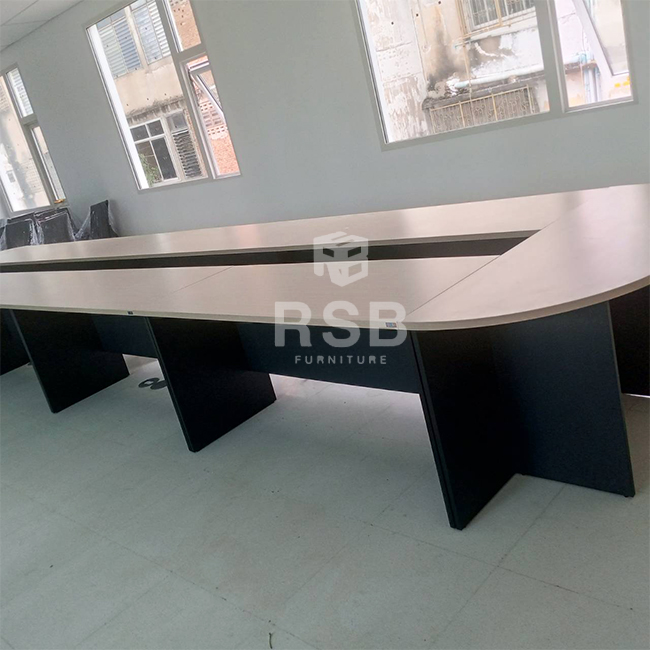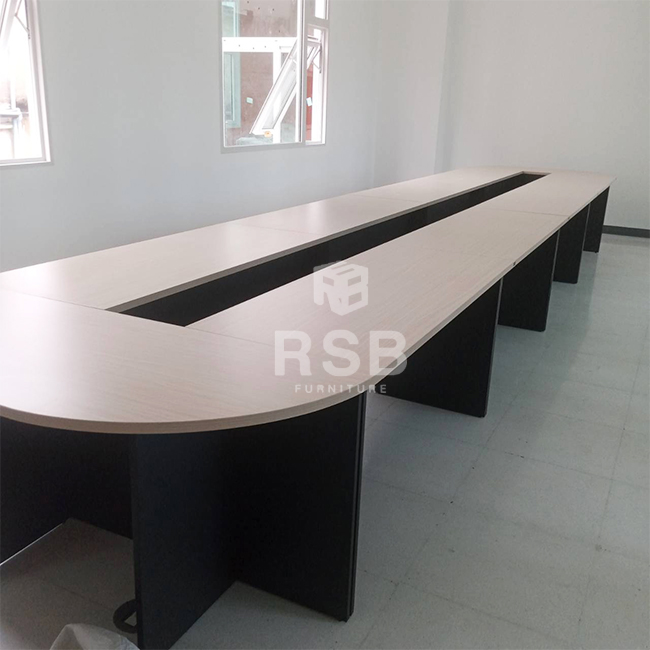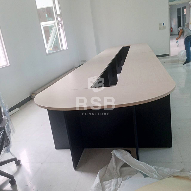 หน้างานนี้เป็นออฟฟิศเปิดใหม่ค่ะ ลูกค้าได้เลือกซื้อโต๊ะประชุมกับทางเราได้เลือกเป็นโต๊ะประชุมตัวต่อ ขาไม้รหัส 988 ขนาด 570 x 150 ซม. จะนั่งได้จำนวน 14-16 ที่นั่งค่ะ และยังมีช่องตรงกลางไว้รอดสายไฟไม่ต้องสั่งเจาะเพิ่มเลยค่ะ ได้เลือกเฉพาะหน้าท๊อปสีไวท์โอ๊ค ส่วนอื่นสีดำค่ะ