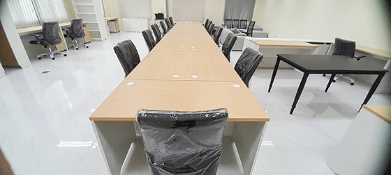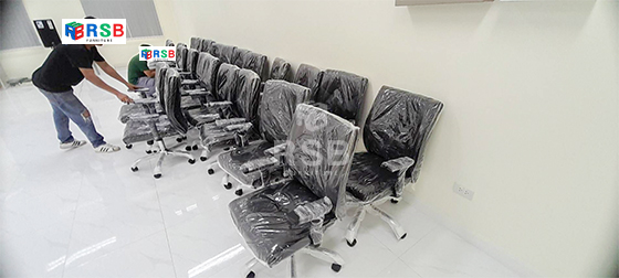 หน้างานนี้จัดส่งเก้าอี้สำนักงานพนักพิงหนังทั้งตัว มีที่ท้าวแขน รหัสสินค้า 4780 รุ่นนี้ที่ท้าวแขนปรับสู่ง-ต่ำได้ เบาะหนาและนุ่มมากค่ะ นั่งทำงานนานๆได้สบายเลยสำหรับพนักงานออฟฟิศ พนักพิงเอนโยกได้ และรุ่นนี้ยังสามารถเลือกสีหนังได้ค่ะ ลูกค้าเลือกใช้สีดำ และได้สั่งโต๊ะทำงานขาไม้ รหัสสินค้า 1036 ขนาดกว้าง 120 x ลึก 60 cm นำไปเรียงต่อกันเป็นแถวยาว และสั่งเจาะรูไว้รอดสายไฟจำนวน 2 จุดบนท๊อปค่ะ