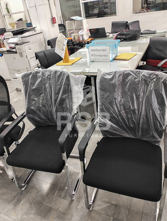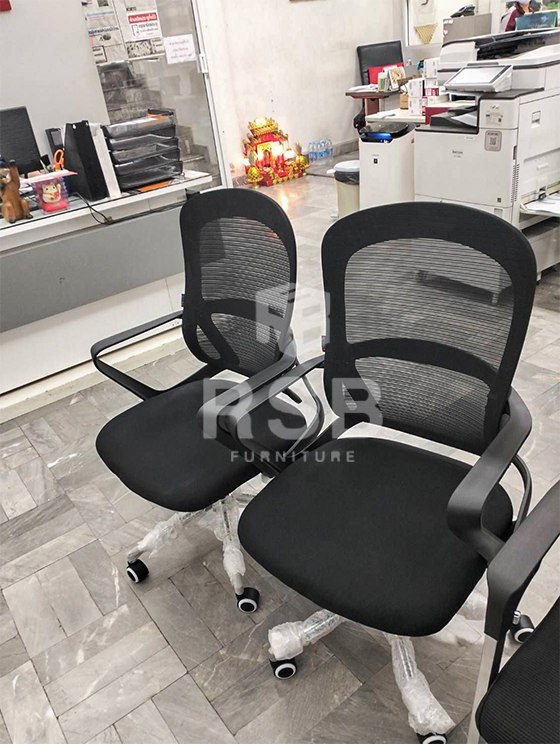 หน้างานนี้จัดส่งเก้าอี้พนักพิงตาข่ายจำนวน 2 รุ่น รุ่นแรกเป็นเก้าอี้สำนักงาน ขาเหล็กทรงตัว C พนักพิงตาข่าย มีที่ท้าวแขน ใต้ฐานเก้าอี้ มีคานเหล็กช่วยรับน้ำหนักได้มาก รหัสสินค้า 3946 ส่วนอีกรุ่นเก้าอี้ทำงาน ขาเหล็กชุบโครเมียมเงา 5 แฉก ลูกล้อไนลอน กันรอยเวลาลากที่พื้น หุ้มด้วยหนักพิงตาข่าย รุ่นนี้เบาะกว้างนั่งสบาย รหัสสินค้า 4674