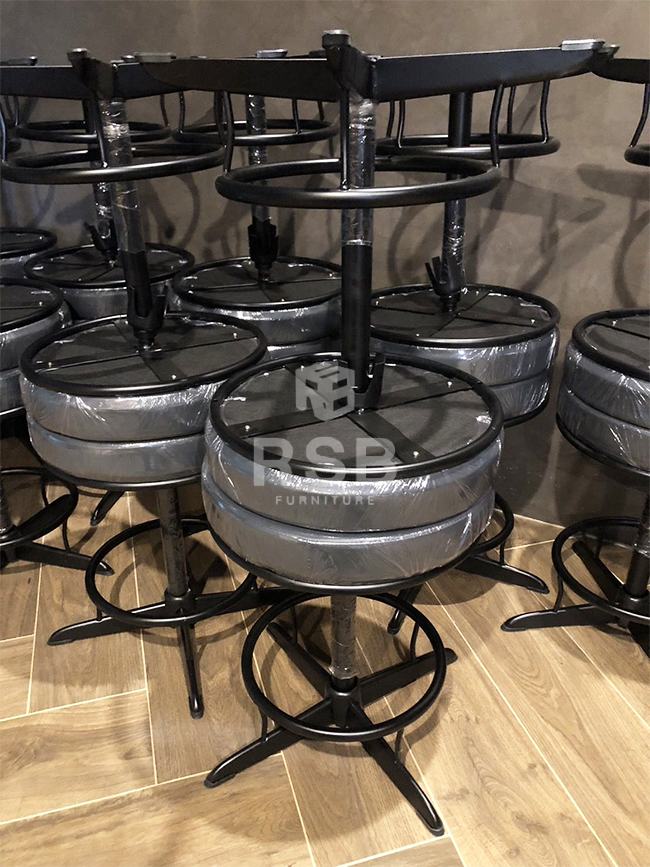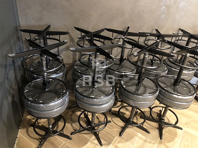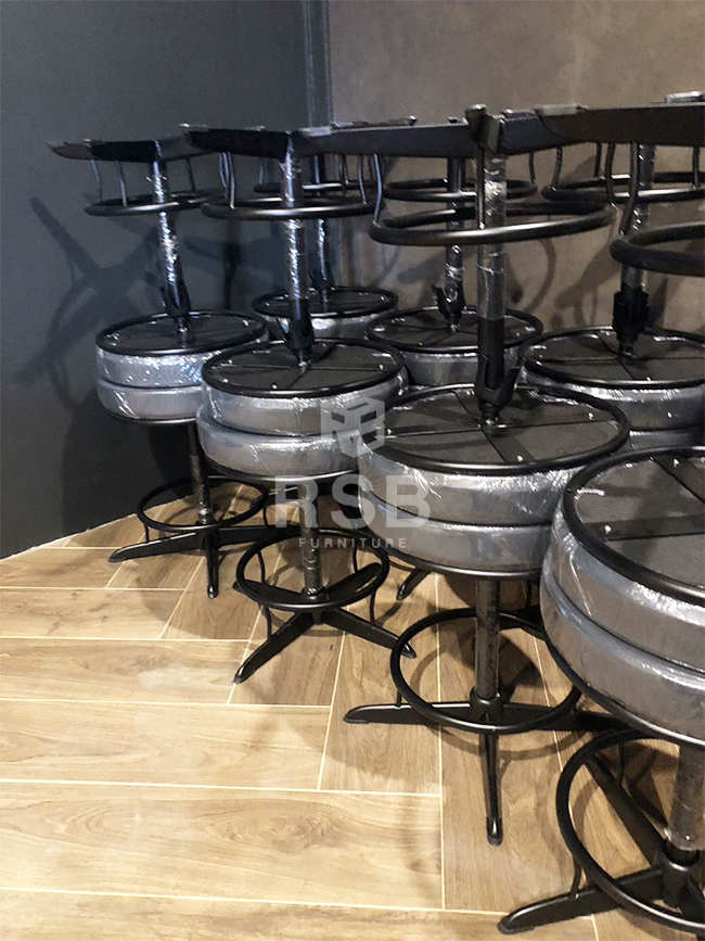 หน้างานนี้จัดส่งเก้าอี้บาร์จำนวนหลายตัวเลยค่ะ ลูกค้าต้องการเก้าอี้บาร์ที่แข็งแรง เลยได้เลือกซื้อเก้าอี้บาร์ รหัสสินค้า 1475 รุ่นนี้ขาเป็นเหล็ก พ่นสีดำและเสริมที่วางเหยียบเท้า ตรงฐานเก้าอี้เป็นเหล็กเส้นคาด กากบาท ยึด ช่วยรับน้ำหนักได้ดีมากๆค่ะ แข็งแรง เบาะนั่งหุ้มด้วยหนัง ลูกค้าได้เลือกหนังสีดำค่ะ