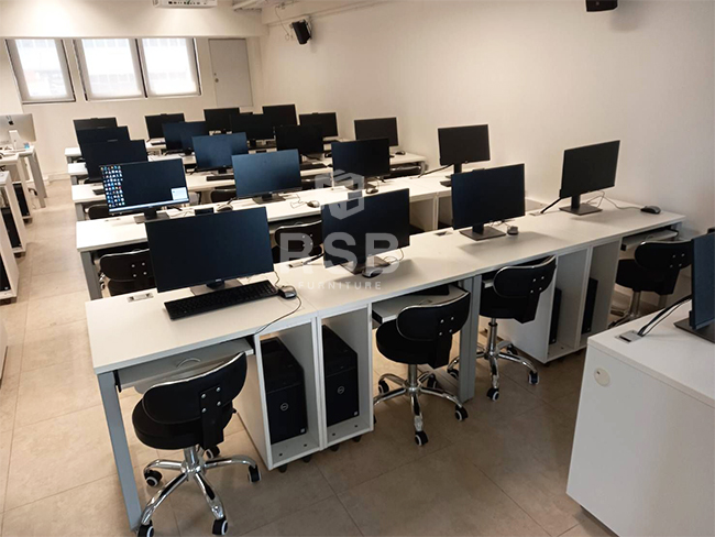 หน้างานนี้เป็นหน้างานภายในบริษัทค่ะ ลูกค้าเลือกซื้อเก้าอี้บาร์มีพนักพิงไปใช้งานภายในห้องคอมพิวเตอร์จำนวนหลายตัวเลยค่ะ รหัสสินค้า 4658 เก้าอี้รุ่นนี้เป็นเก้าอี้บาร์ที่มีพนักพิงช้อนหลัง และที่นั่งเบาะหนาสเปค A มีล้อเลื่อน ล้อสเปคไนลอนไม่เป็นรอยง่าย เวลาลากไปมาค่ะ สามารถเคลื่อนย้ายได้สะดวก เวลานั่งหมุนได้ 360 องศา และยังปรับระดับความสูงของที่นั่งได้ง่ายๆ จึงเป็นที่นิยมนำไปใช้งานค่ะ