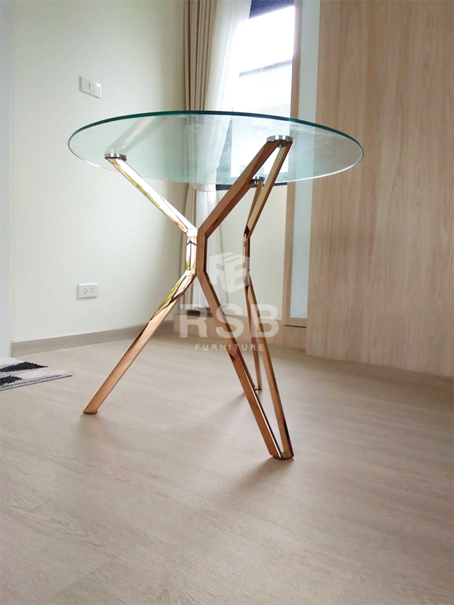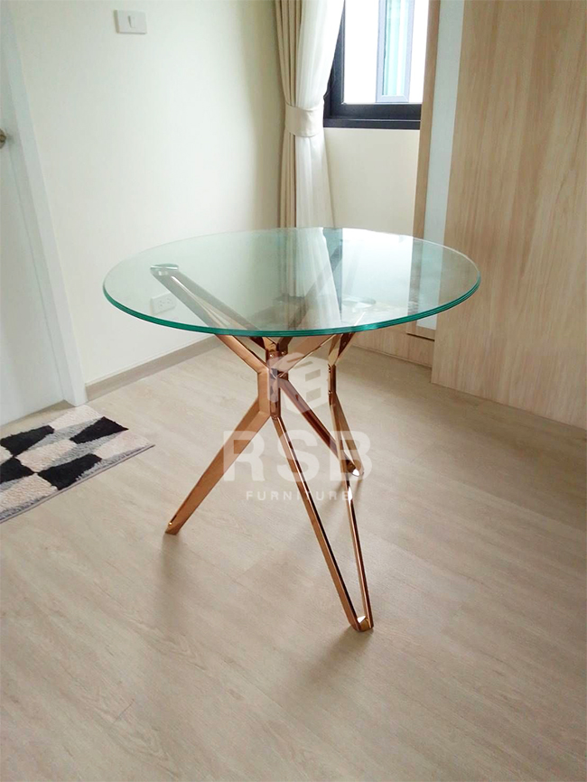 หน้างานนี้เป็นหน้างานของลูกค้าที่เลือกซื้อโต๊ะกระจกทรงกลม รหัส 4559 กับทาง RSB ค่ะ โต๊ะรุ่นนี้เป็นกระจก TEMPER GLASS (กระจกนิรภัย) ทรงกลมค่ะ ขาเป็นเหล็กดีไซน์ ลูกค้าได้เลือกขาสีทองค่ะ ดูสวย โมเดิร์นมากๆค่ะ ตอบโจทย์ลูกค้าหน้างานนี้มากค่ะ