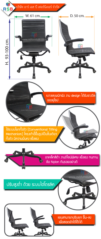 – งาน design ได้รับรางวัล พนักพิงและที่นั่ง ทำเส้นไนลอนหนา รับน้ำหนักได้สูง ยืดหยุ่นได้ดี เวลาพิงเอน