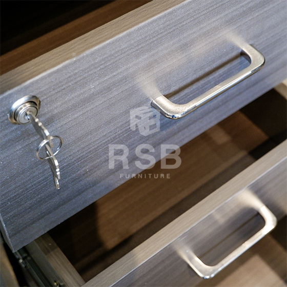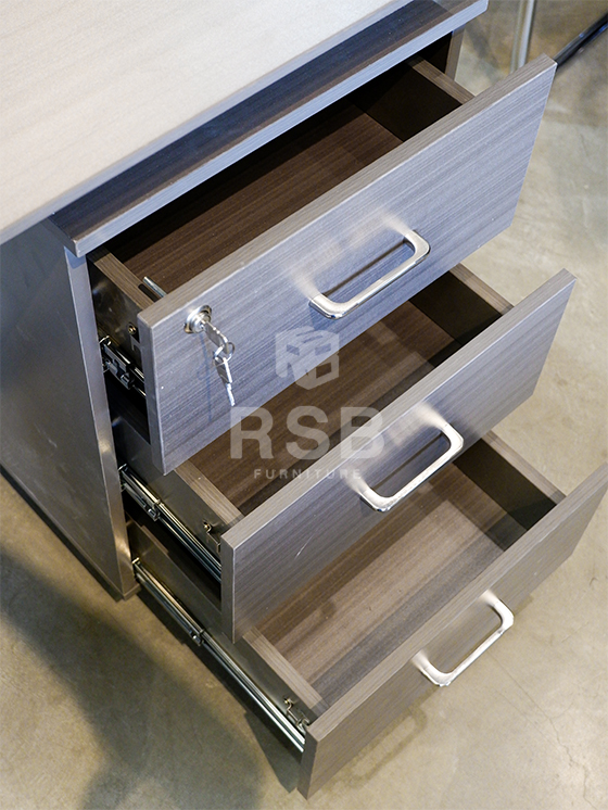 – มี 3 ลิ้นชัก วางเต็มถึงพื้น พร้อมกุญแจล็อค และมือจับเหล็ก