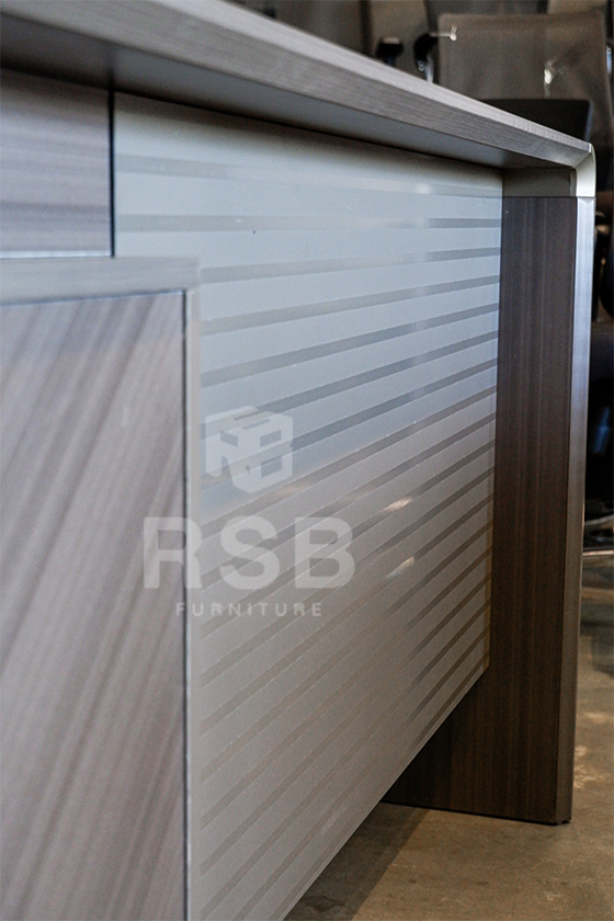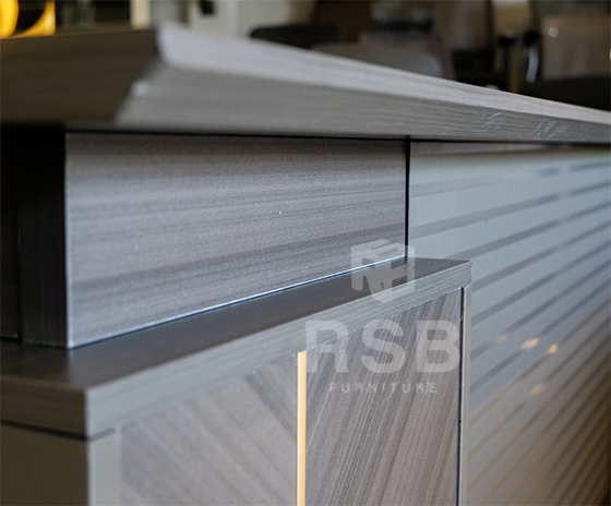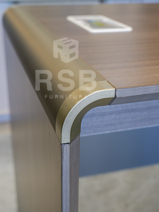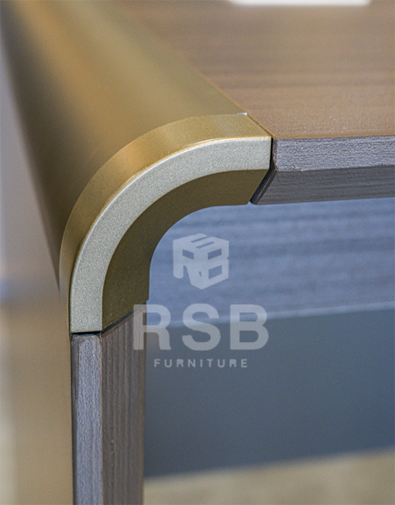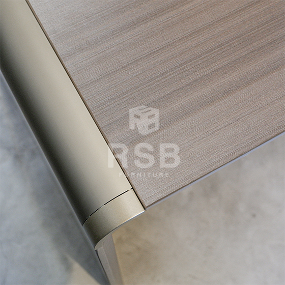 – ขอบสันโต๊ะ ด้านหนึง ออกแบบดีไซน์ ใช้วัสดุอลูมิเนียมโค้งมน ดูลงตัวกับ ดีไซน์ของโต๊ะ