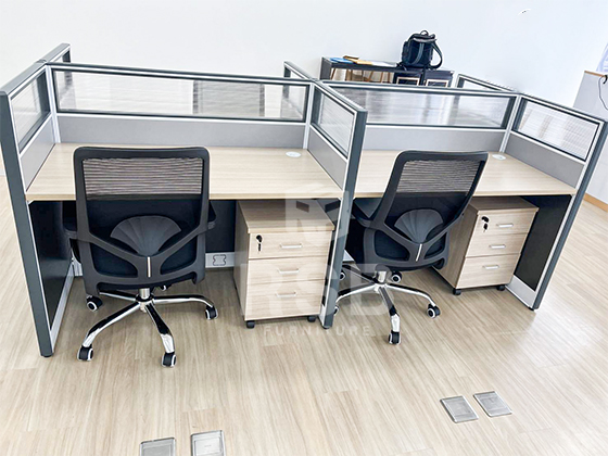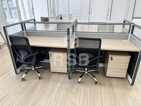 โซนทำงานภายในออฟฟิศ ลูกค้าต้องการโต๊ะทำงานแบบ 4 ที่นั่ง ที่มีฉากกั้นแบ่งสัดส่วน ได้เข้ามาเลือกซื้อสินค้าที่โชว์รูม RSB เลือกไปมาได้ตอบโจทย์กับโต๊ะทำงานกลุ่ม 4 ที่นั่ง รหัสสินค้า 5113 มาพร้อมฉากกั้นแบ่งโซนและตู้ลิ้นชักล้อเลื่อน โต๊ะมีขนาด กว้าง 240 x ลึก 120 x และสูง 75-110 cm แต่ละที่นั่ง W120 x D60 cm ลูกค้าเลือกใช้คู่กับเก้าอี้ทำงาน พนักพิงหลังใหญ่ เบาะนุ่มสบาย รหัสสินค้า 4455