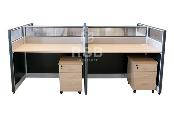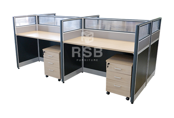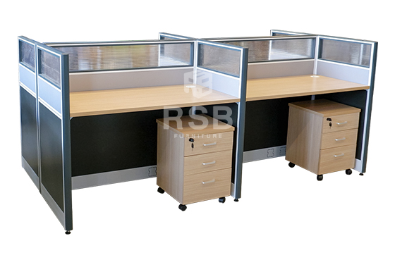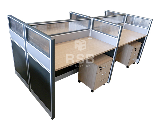 โต๊ะทำงานกลุ่ม Workstation 4 ที่นั่ง รหัส 5113 พร้อมฉากกั้นแบ่งโซน + ตู้ลิ้นชักล้อเลื่อน ขนาด W240 x D120 CM