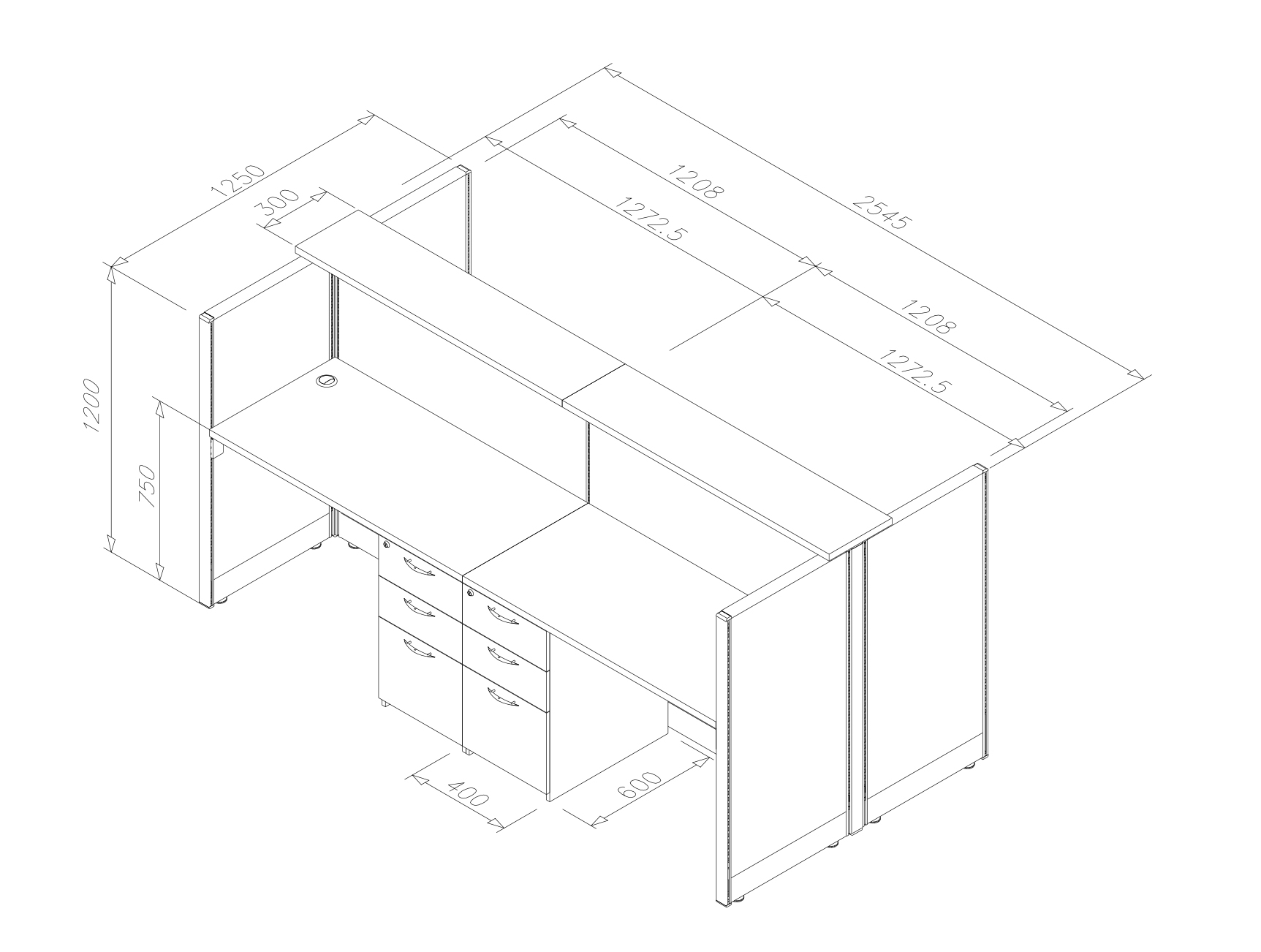 – ชุดทำงาน 4 ที่นั่งขนาด 254.5 X 125 X 120 cm